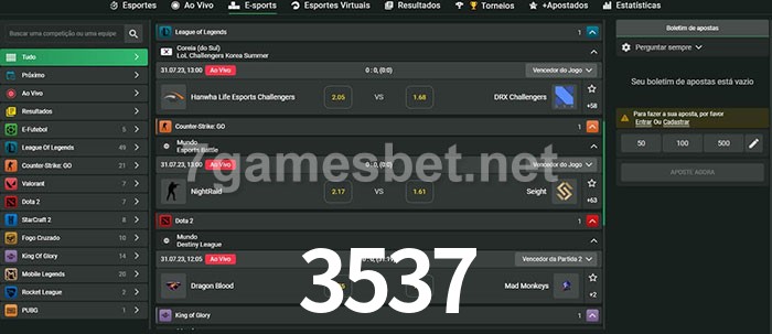 A aposta 3537 oferece aos jogadores a experiência mais conveniente de apostas em eSports!